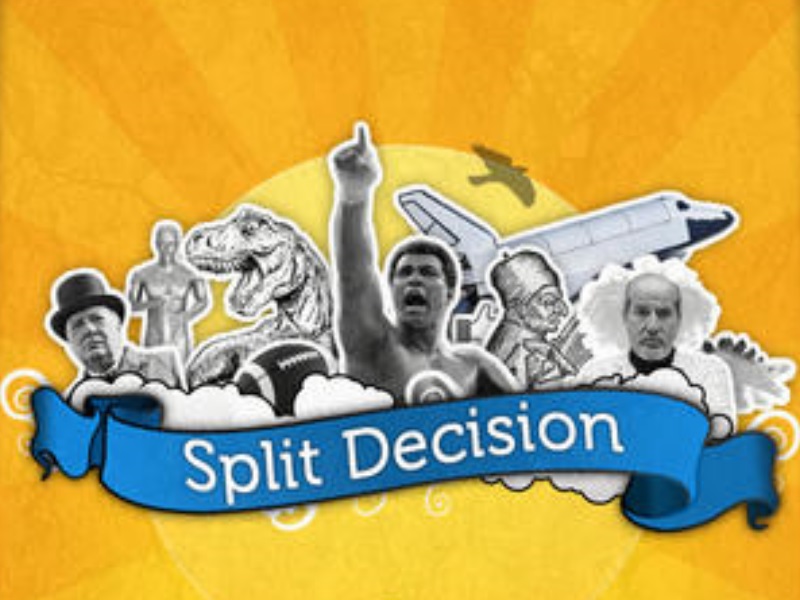 Essentially a quiz game, Split Decision asked you to choose between obscure choices like: Is Boccob a type of potato, or a deity in Dungeons & Dragons? or Is Curse of the Wererabbit a Bafta winner, or a Razzie winner?