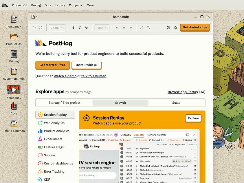 Teams at PostHog wear many hats, so I’ve done everything from launching our startup program to shipping product features like the in-app roadmap. I also built the foundations of our content, demand gen, customer support, partnerships, and product marketing teams