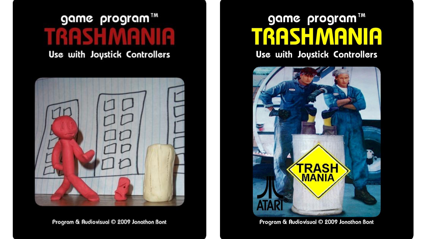 This is a game called Trashmania, by Jonathan Bont. It’s an Atari 2600 homebrew game about collecting rubbish and he made it when he was 14.
